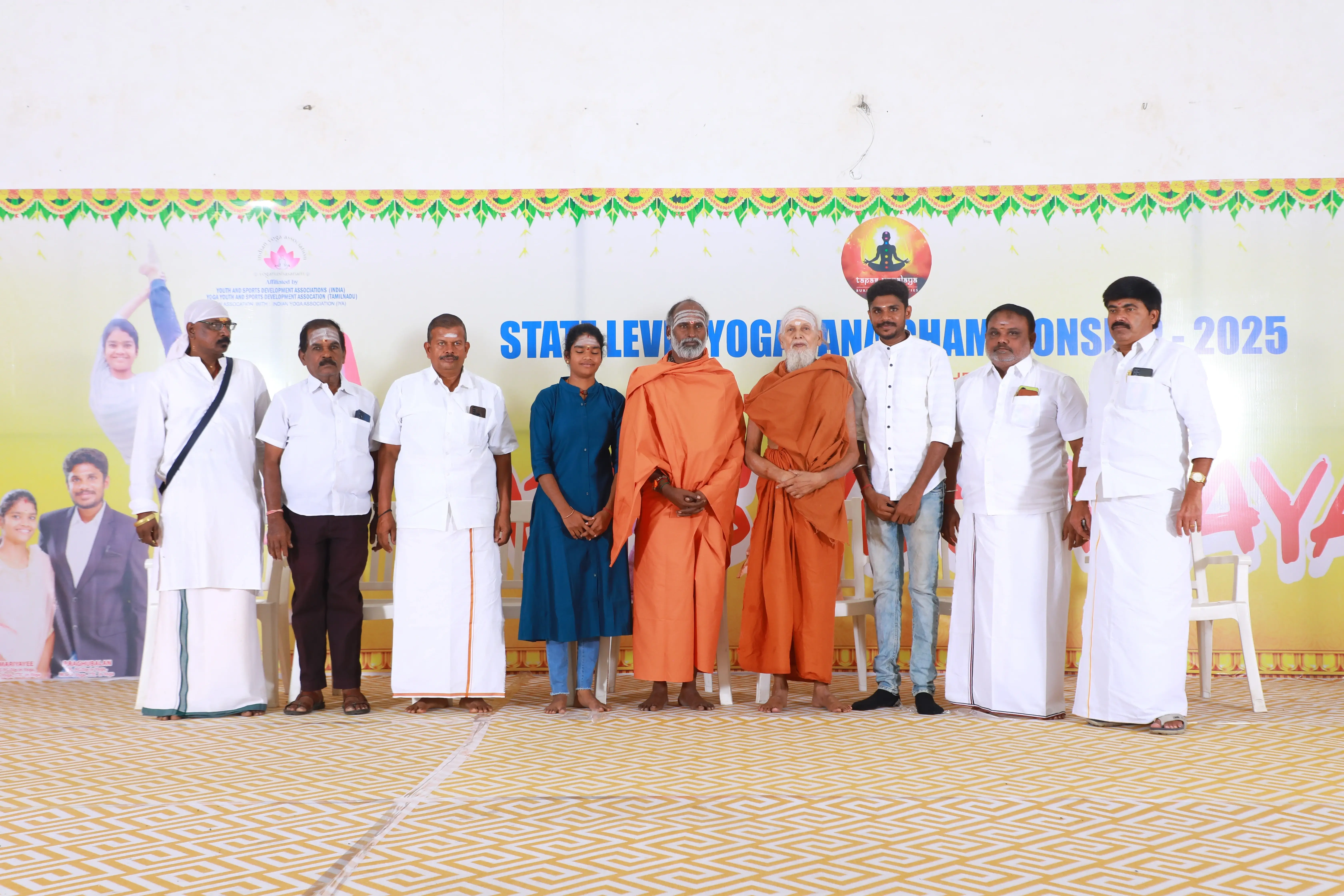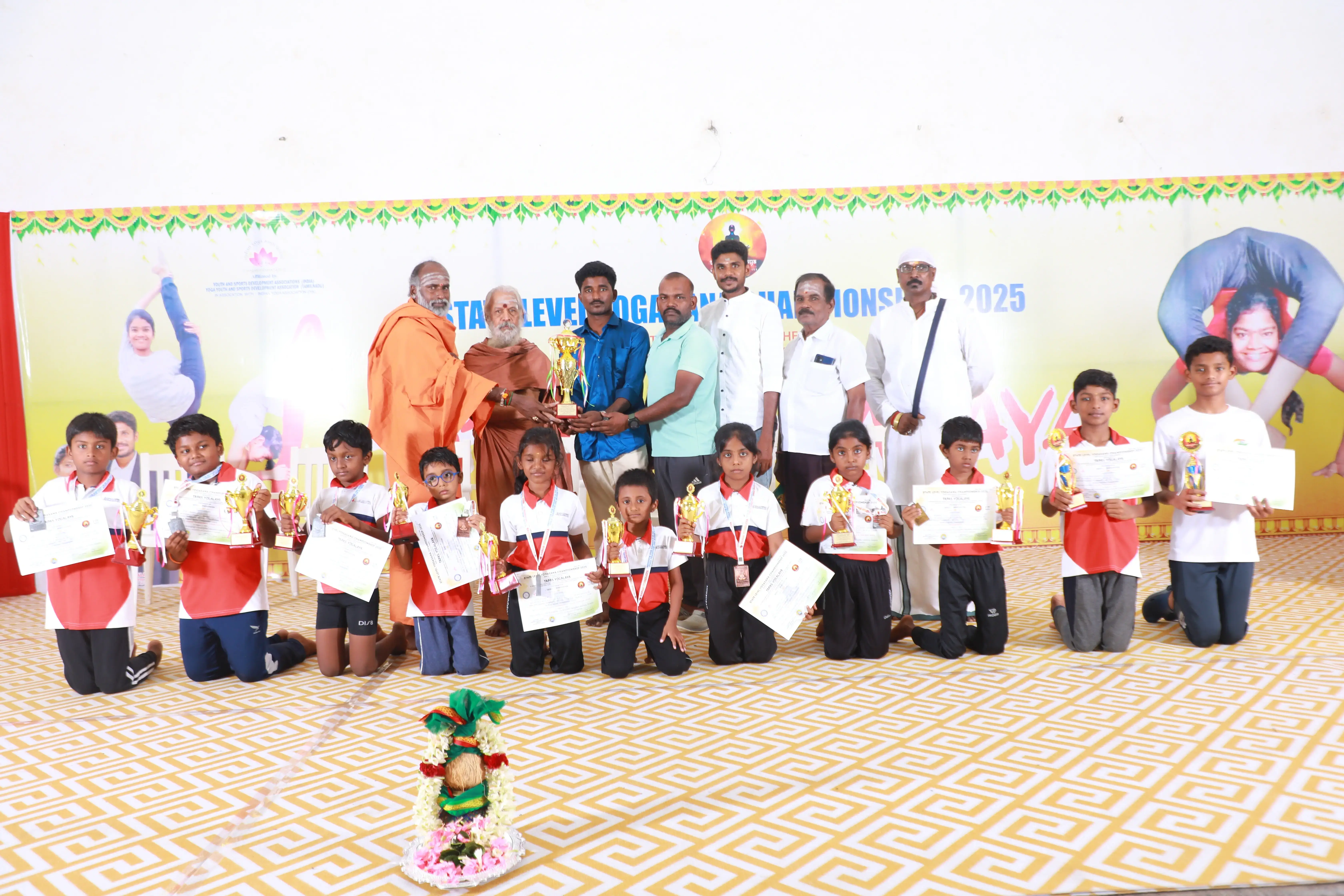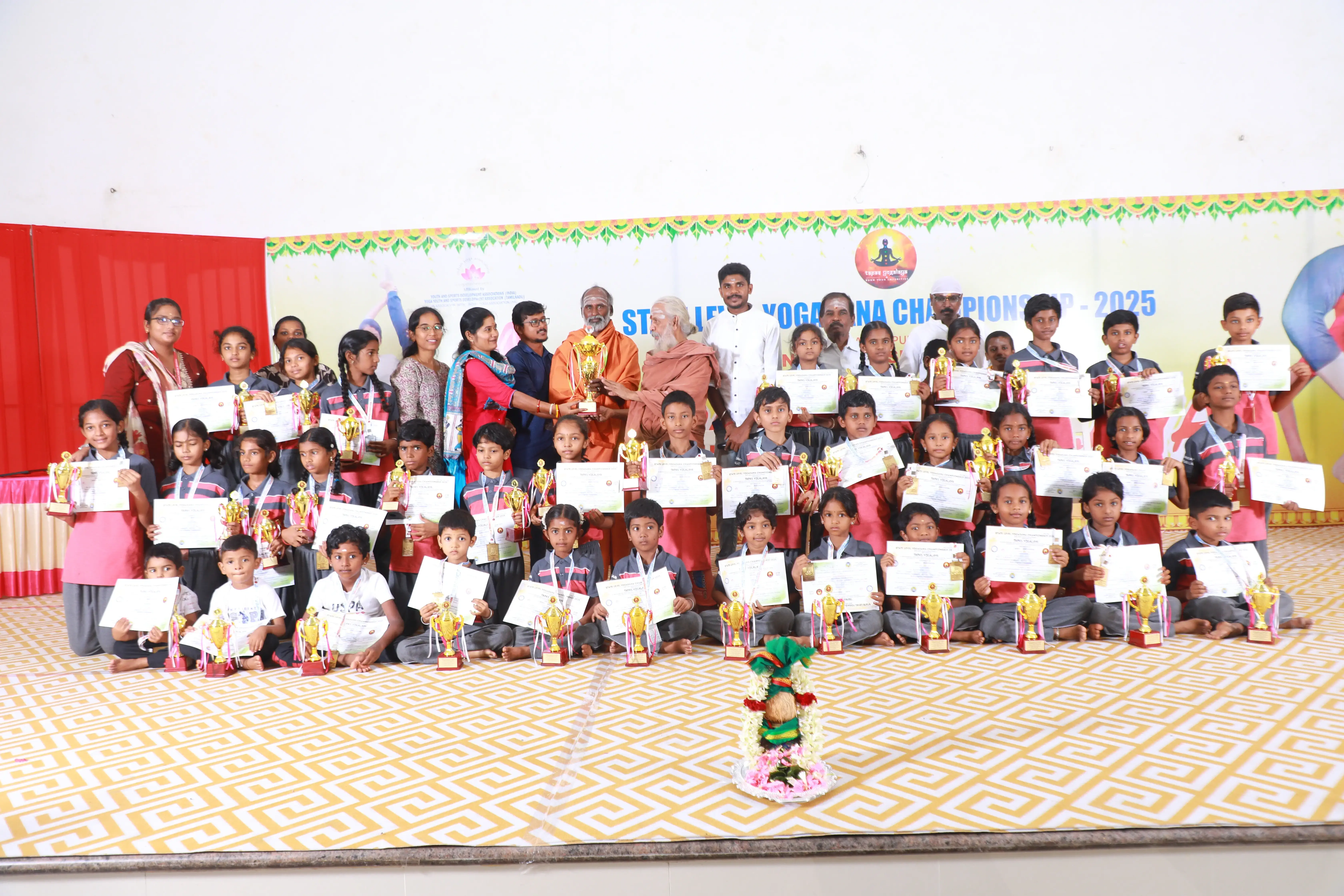 Organized by Tapas Yogalaya, the State Level Yogasana Championship 2025 was held on August 17, 2025, at Raba KRR Thirumana Mahal, Avinashi.