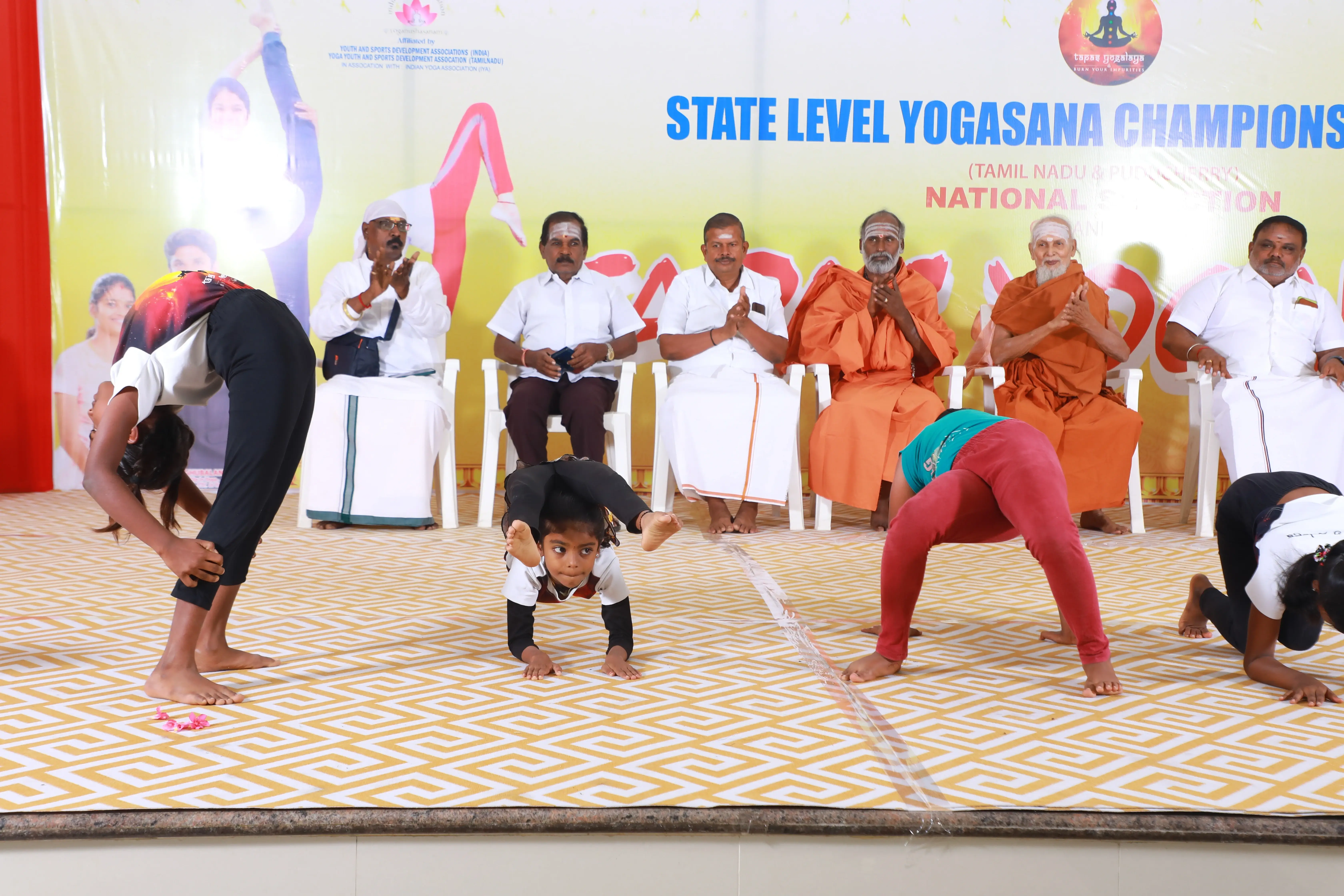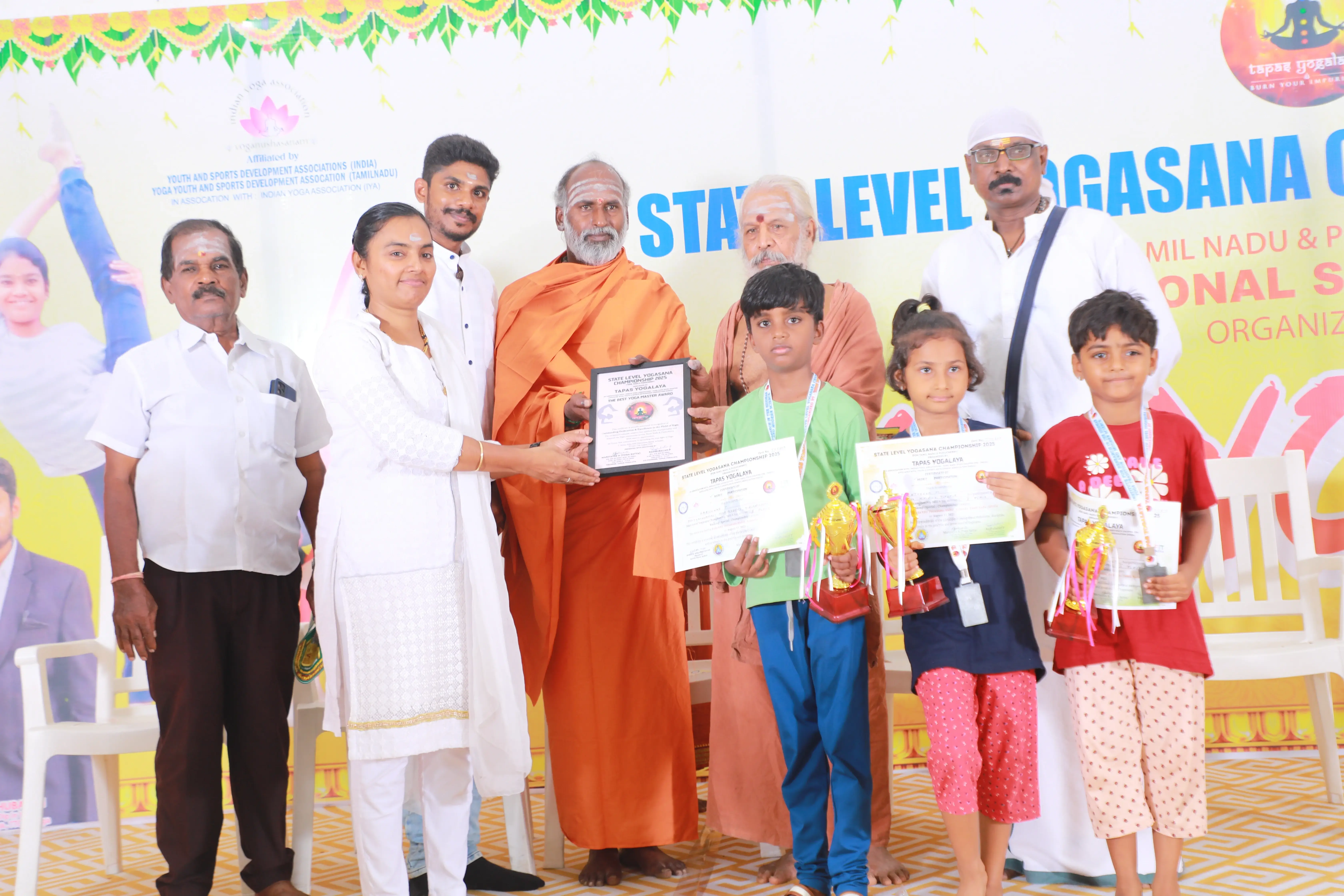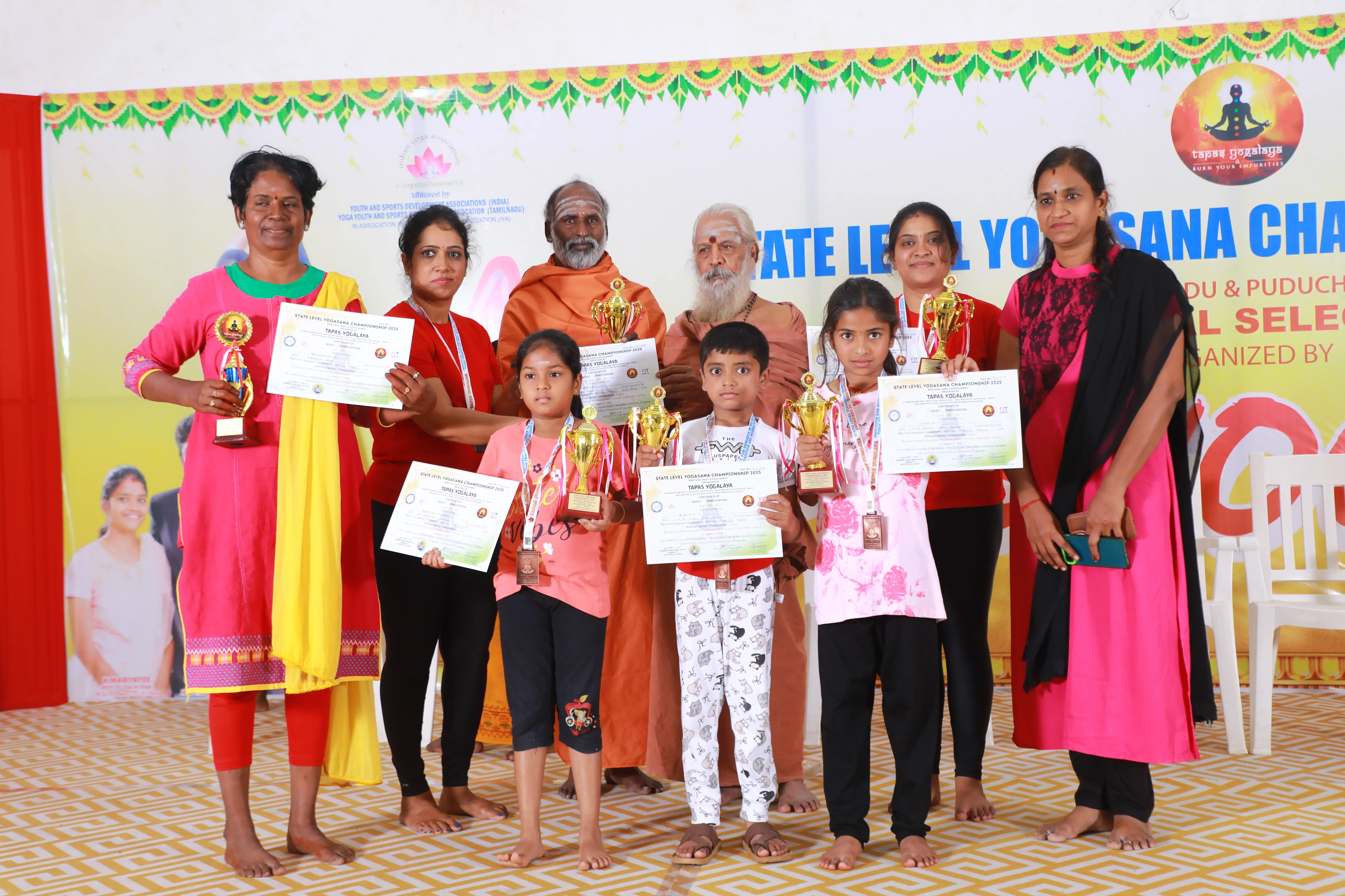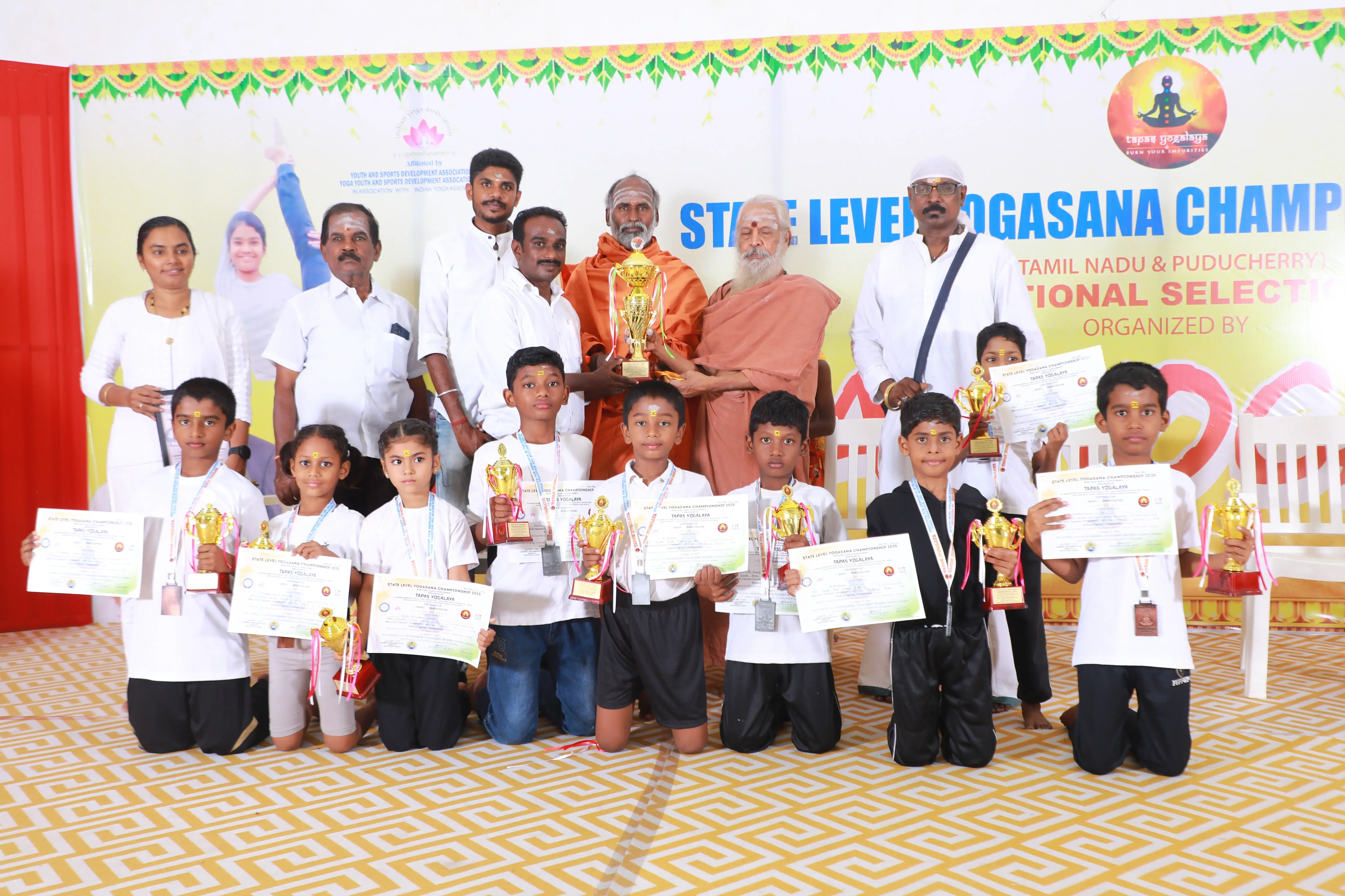 Organized by Tapas Yogalaya, the State Level Yogasana Championship 2025 was held on August 17, 2025, at Raba KRR Thirumana Mahal, Avinashi.